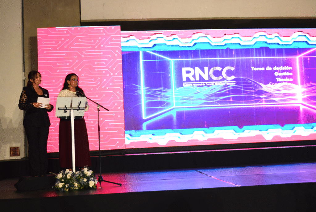 Uno de los momentos centrales del evento fue la puesta en marcha oficial del RNCC, encabezada por la subsecretaría de Cambio Climático, Jéssica Gallegos, quien enfatizó que el RNCC permitirá visibilizar las acciones de mitigación y adaptación de entidades sectoriales y locales, las necesidades del país en términos de financiamiento, construcción de capacidades y transferencia de tecnología, así como optimizar la elaboración de reportes nacionales e internacionales con mayor eficiencia y menor uso de recursos. Resaltó además la labor del equipo de la subsecretaría de cambio climático, un actor fundamental en la puesta en marcha de este sistema.