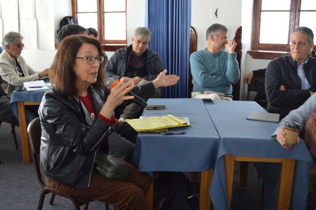 Después de esta recapitulación colectiva, llegó el turno de escuchar a representantes de instituciones. Cada intervención traía consigo miradas distintas sobre las condiciones que hoy están transformando los sistemas alimentarios en América Latina, generando un primer momento de ideas que luego se profundizaría de forma más dinámica.